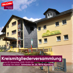 Am Samstag, dem 22. November 2025, findet um 10:00 Uhr im Hotel „Am Wald“, Schmücker Str. 20, 98716 Elgersburg, unsere Kreismitgliederversammlung statt.