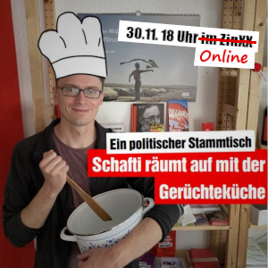 Christian Schafts politischer Stammtisch "Schafti räumt auf mit der Gerüchteküche" findet bereits zum 6. Mal statt und mittlerweile könnte man fast sagen, dass der Stammtisch so sehr ins ZinXX gehört wie die Suppenkelle zum Suppentopf.